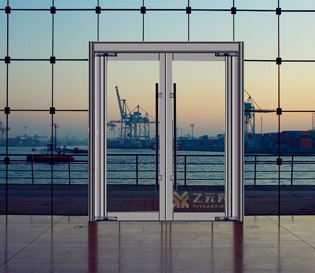 玻璃平衡門主體構件:天軸、地軸、中軸、門體、門框、門把手等部分組成。